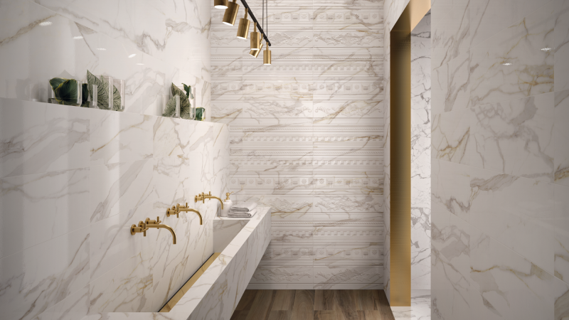 Коллекция Charme Evo в деталях воспроизводит роскошную графику пяти сортов натурального мрамора, позволяя создавать интерьеры, в которых сплетаются классика и современность. Наличие в коллекции окрашенного в массе керамогранита, настенной плитки из белой глины и декоров, разнообразие форматов и типов поверхности, дает возможность реализовывать домашние и коммерческие интерьеры в различных стилях: в современном, в классическом и ар-деко.